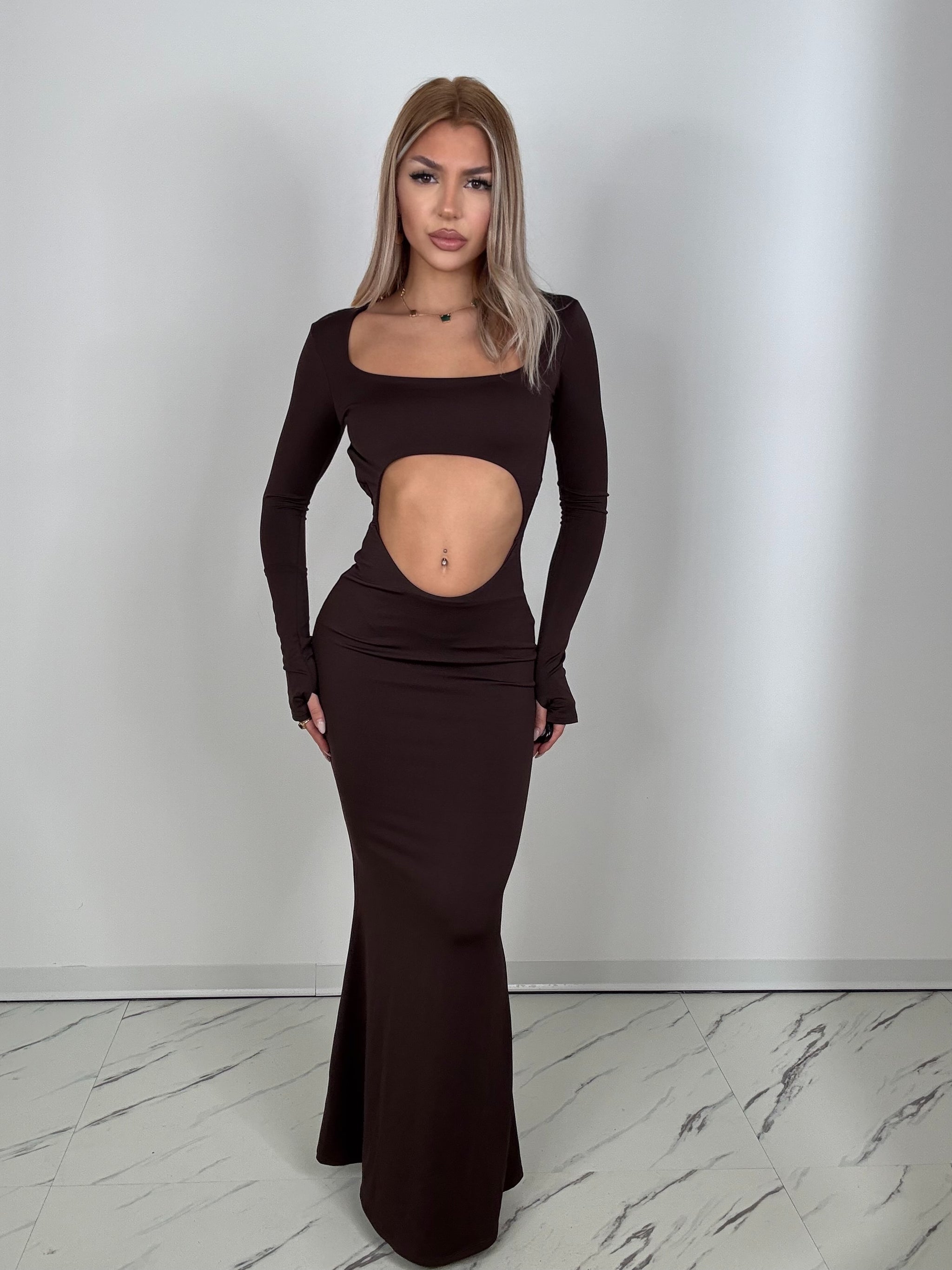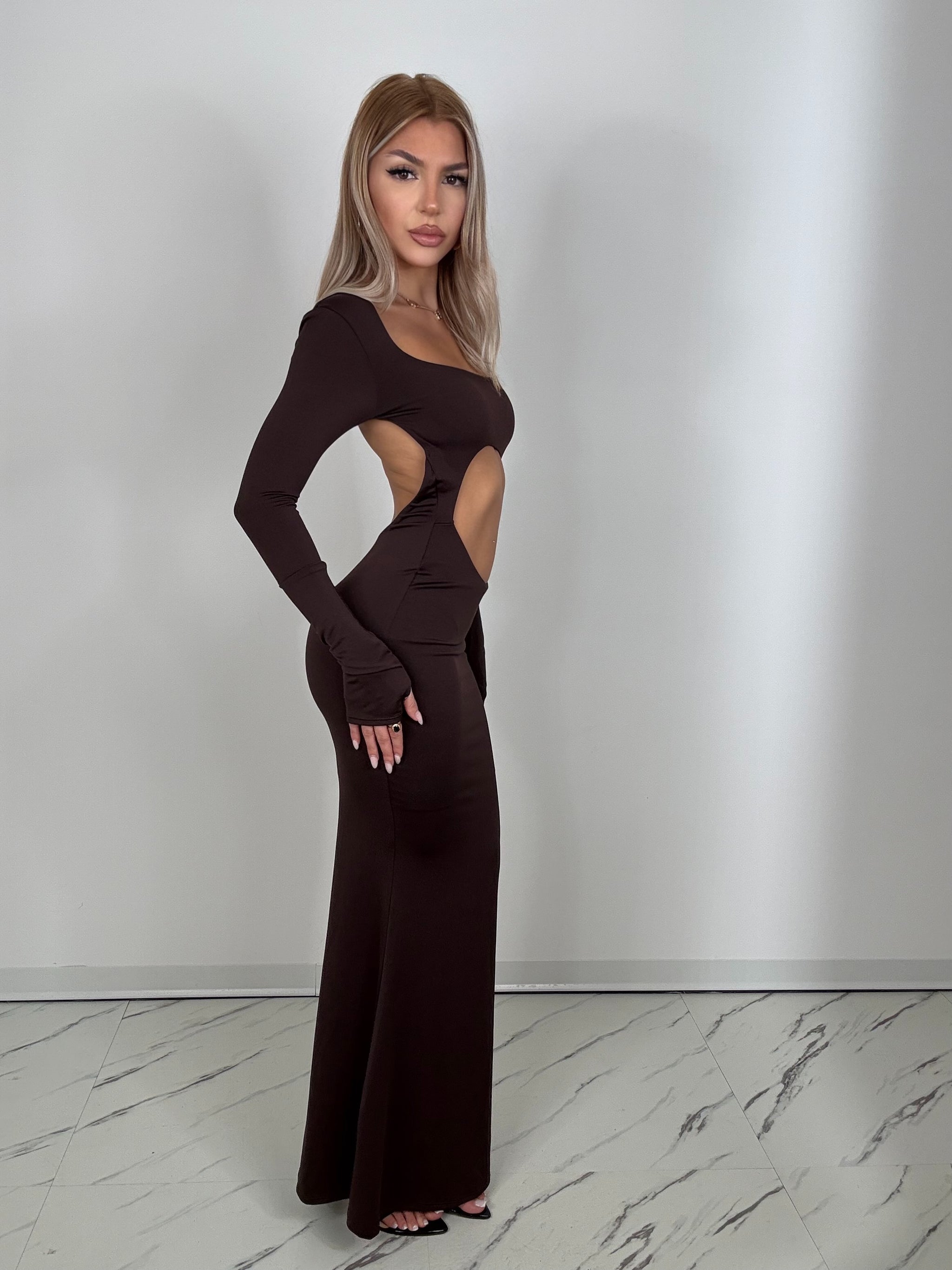 Abito lungo in lycra aderente con schiena scoperta e cut out addome